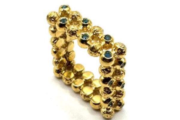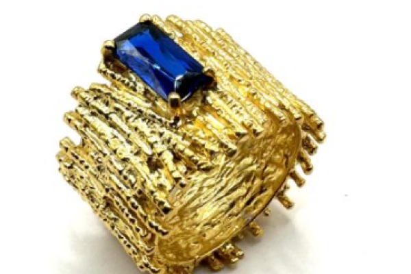 Dark Blue Zircon/18K Gold Modern Ring